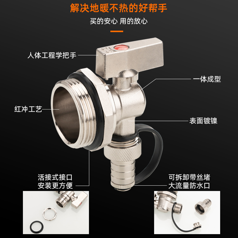 推荐理由:地暖地热分水器放水阀暖气片排水排气排污阀门神器大流量6分1寸