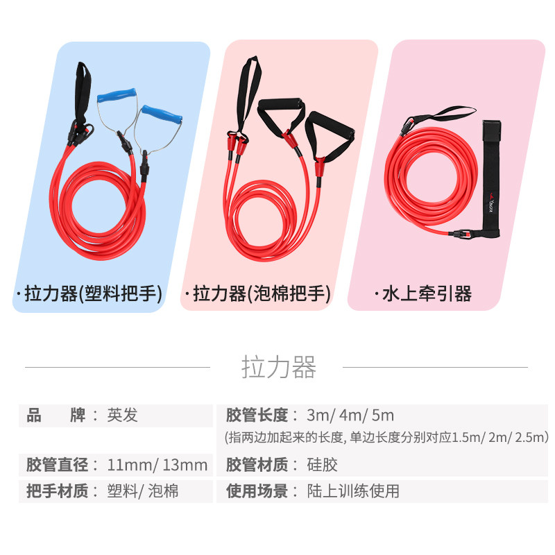 推荐理由:英发硅胶拉力器 陆地游泳锻炼臂力弹性阻力带 专业训练水中牵引绳