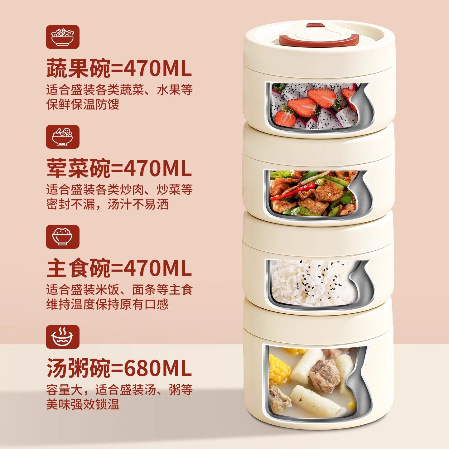 推荐理由:小巧便携 迷你早餐碗 真空七层保温