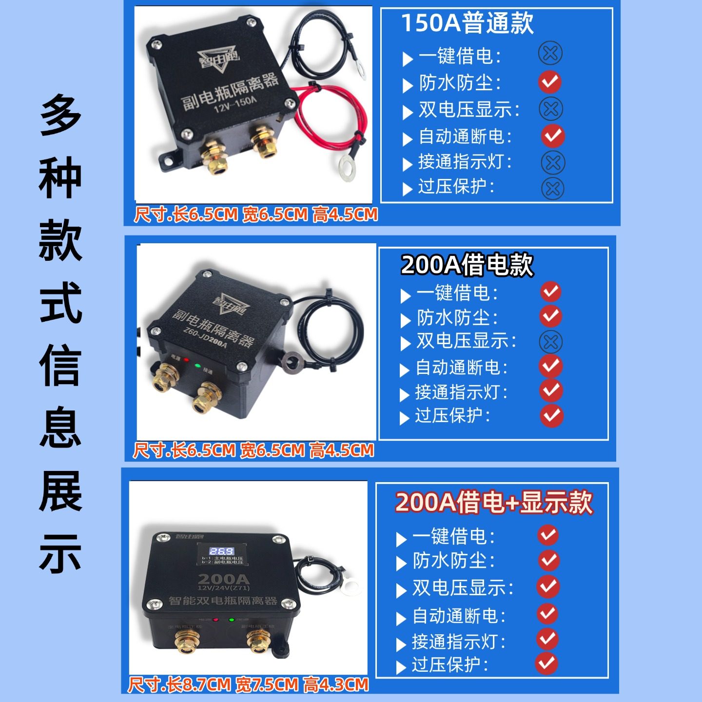 12v24v双电瓶隔离器充电房车铅酸磷酸锂电池主副电瓶改装控制器