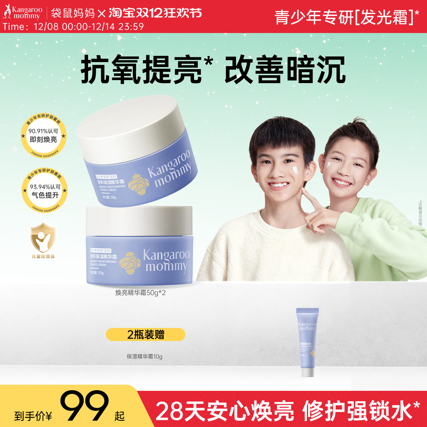 袋鼠妈妈青少年面霜高保湿滋润补水学生改善暗黄肌肤舒缓焕亮乳液