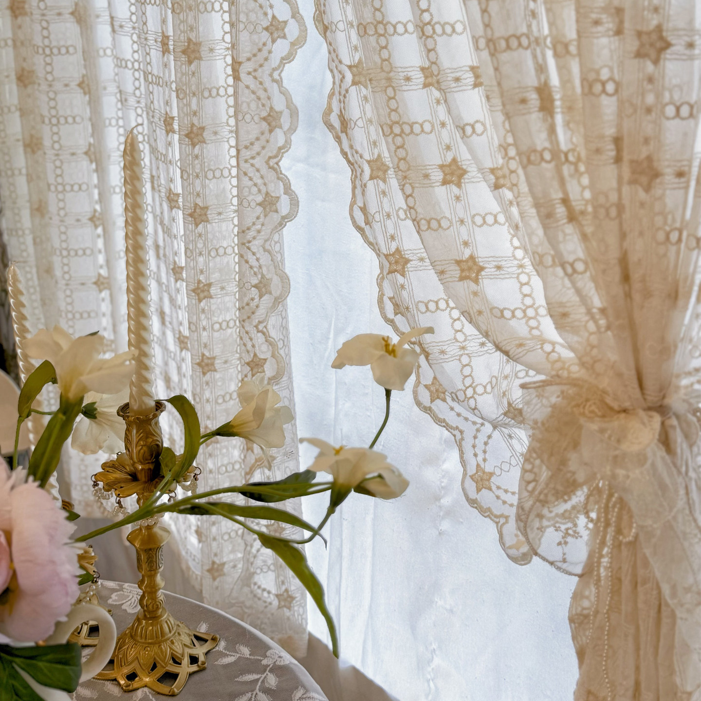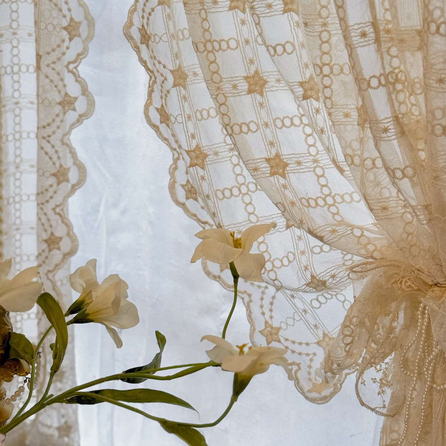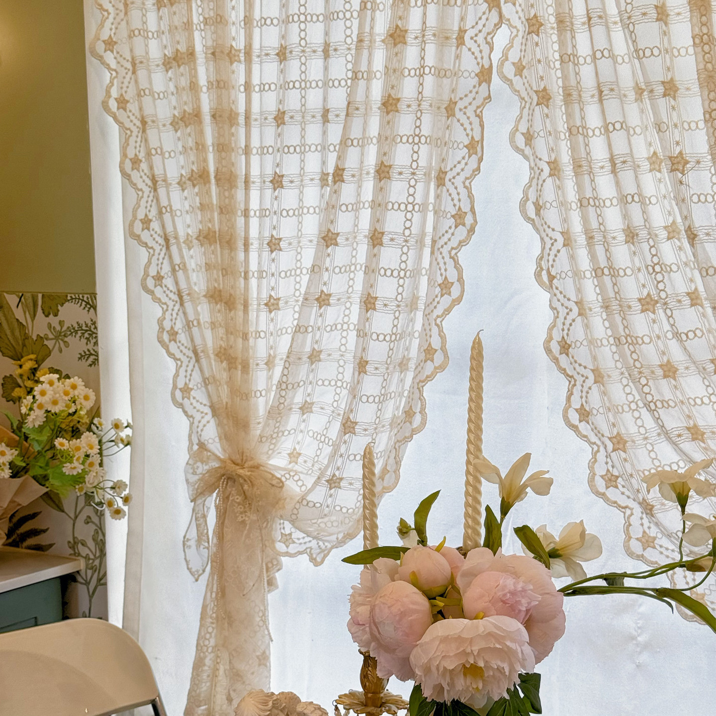 【梦幻星辰】法式奶油风米色透光蕾丝纱帘隔断半帘门帘小窗户窗帘