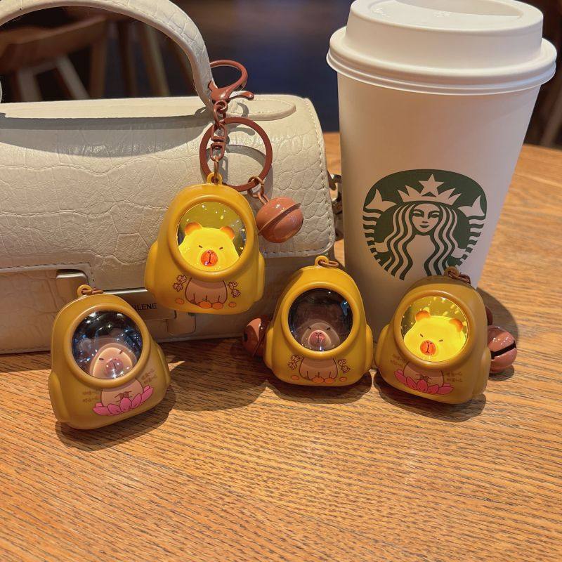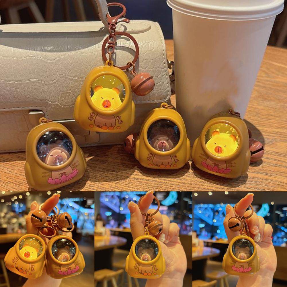 可爱卡皮巴拉小熊书包发光小夜灯钥匙扣网红氛围灯钥匙链包包挂件