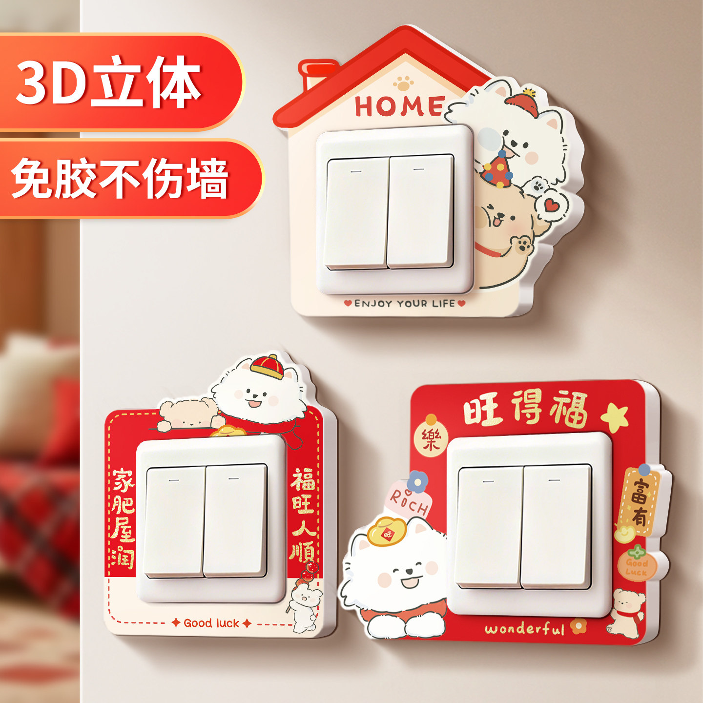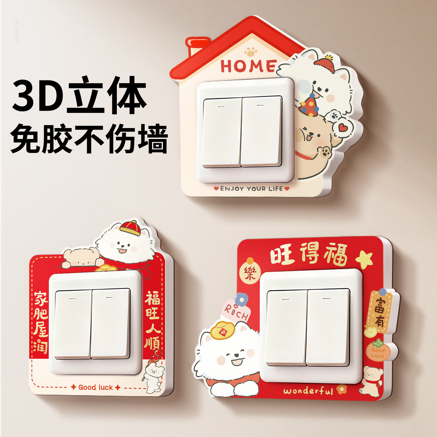 新年开关边框套装饰遮丑盖免粘2026新款开关贴纸插座防脏保护神器