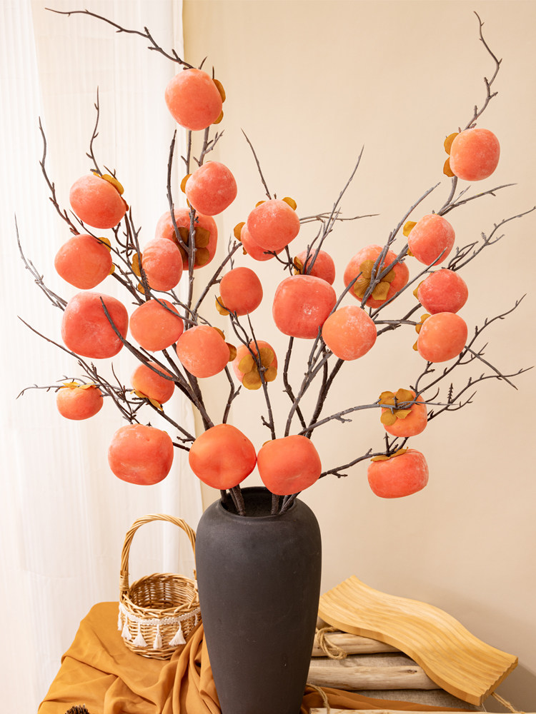 仿真柿子果实假花 7头柿子树枝柿柿如意插花摆件客厅摆设干花装饰