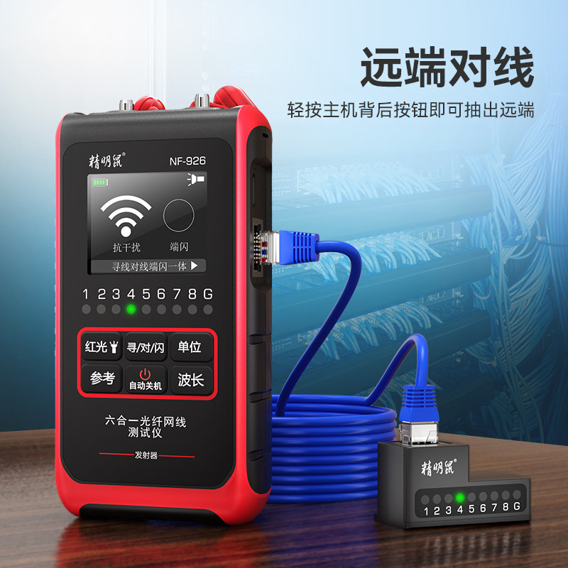 精明鼠网络测试仪NF-926寻线仪巡线测线仪网线检测器墙内通断水晶头电工多功能光纤光功率计红光一体机专业款