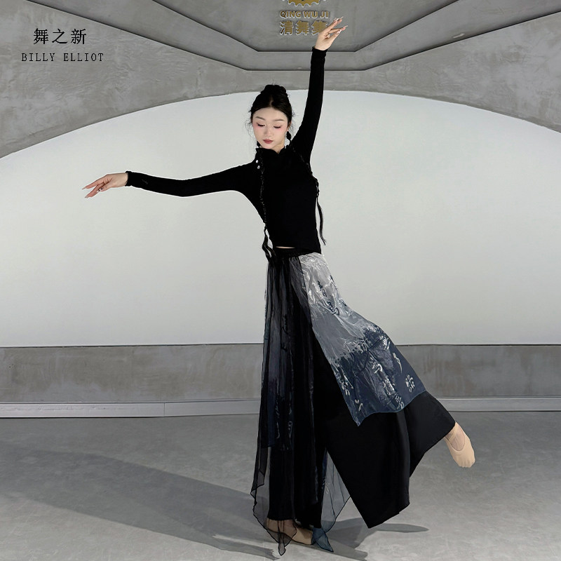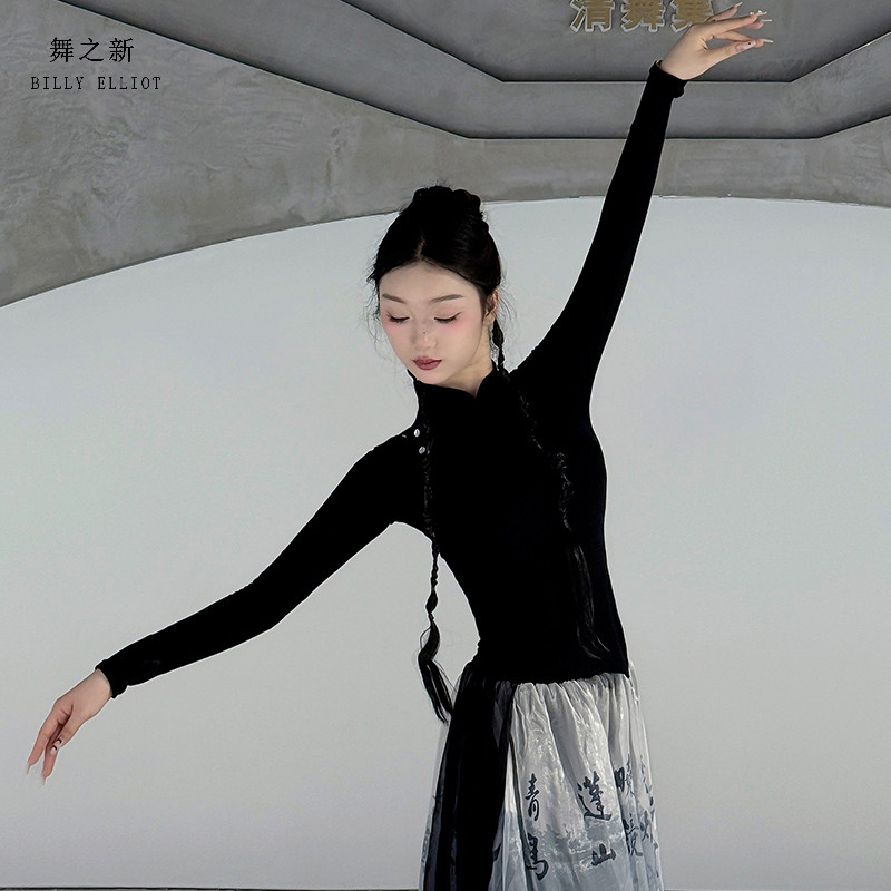 古典舞练功服黑色现代舞衣服中国舞服装长袖形体舞蹈上衣女款新款