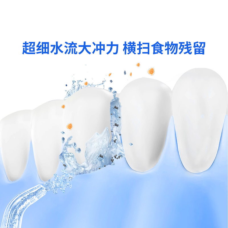 水流超细超有力,牙缝里的食物残渣轻松冲走,牙齿感觉前所未有的干净!而且体积小巧便携,出差旅行也能带上它,随时守护口腔健康。
