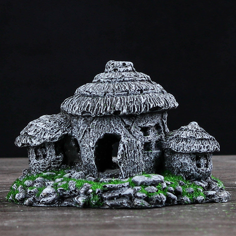 鱼缸造景假山套餐装饰水草石头小摆件小型水族布景内饰躲避洞青苔
