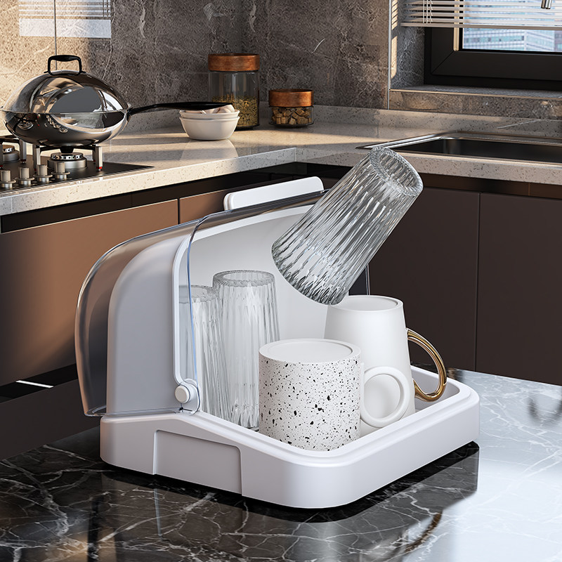 防尘放奶瓶杯子收纳盒家用水杯玻璃茶杯架沥水托盘带盖厨房放碗架