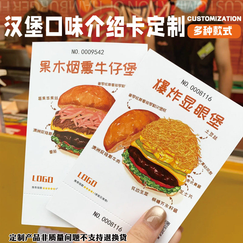 推荐理由:汉堡介绍卡定制餐饮店广告宣传拓客卡设计西式快餐食材说明卡定做