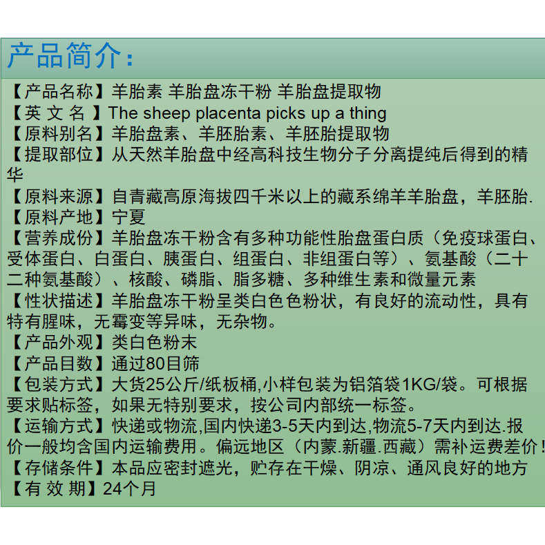 推荐理由:食品级 羊胎盘胚胎提取物冻干粉 100克装调理 滋补 养颜专用 包邮