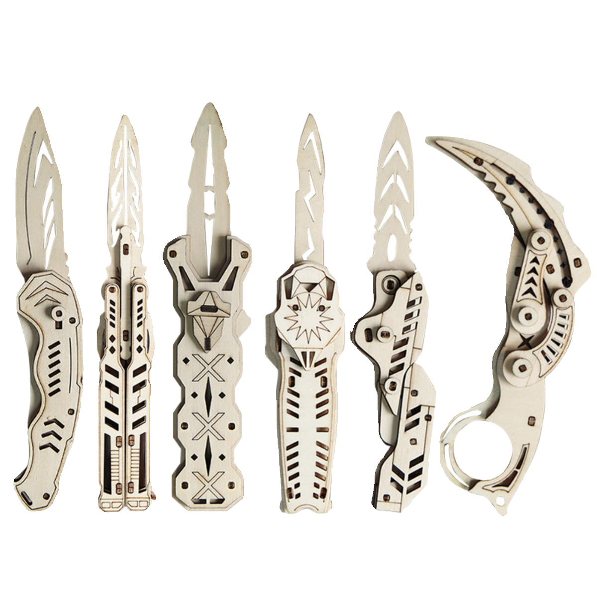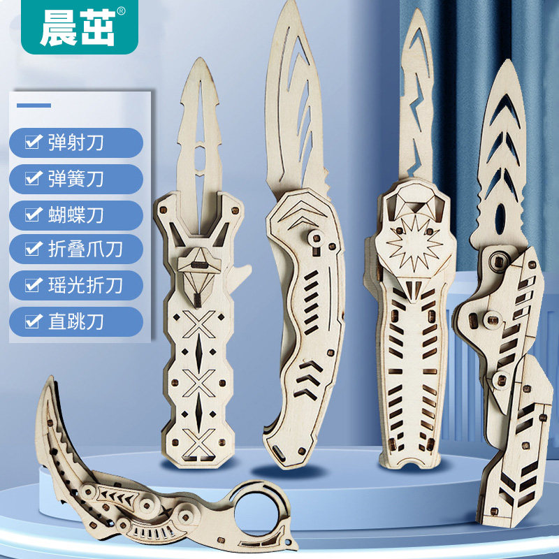 手工拼装模型刀木质折叠刀新款加厚拼图积木蝴蝶刀木制玩具爪子刀
