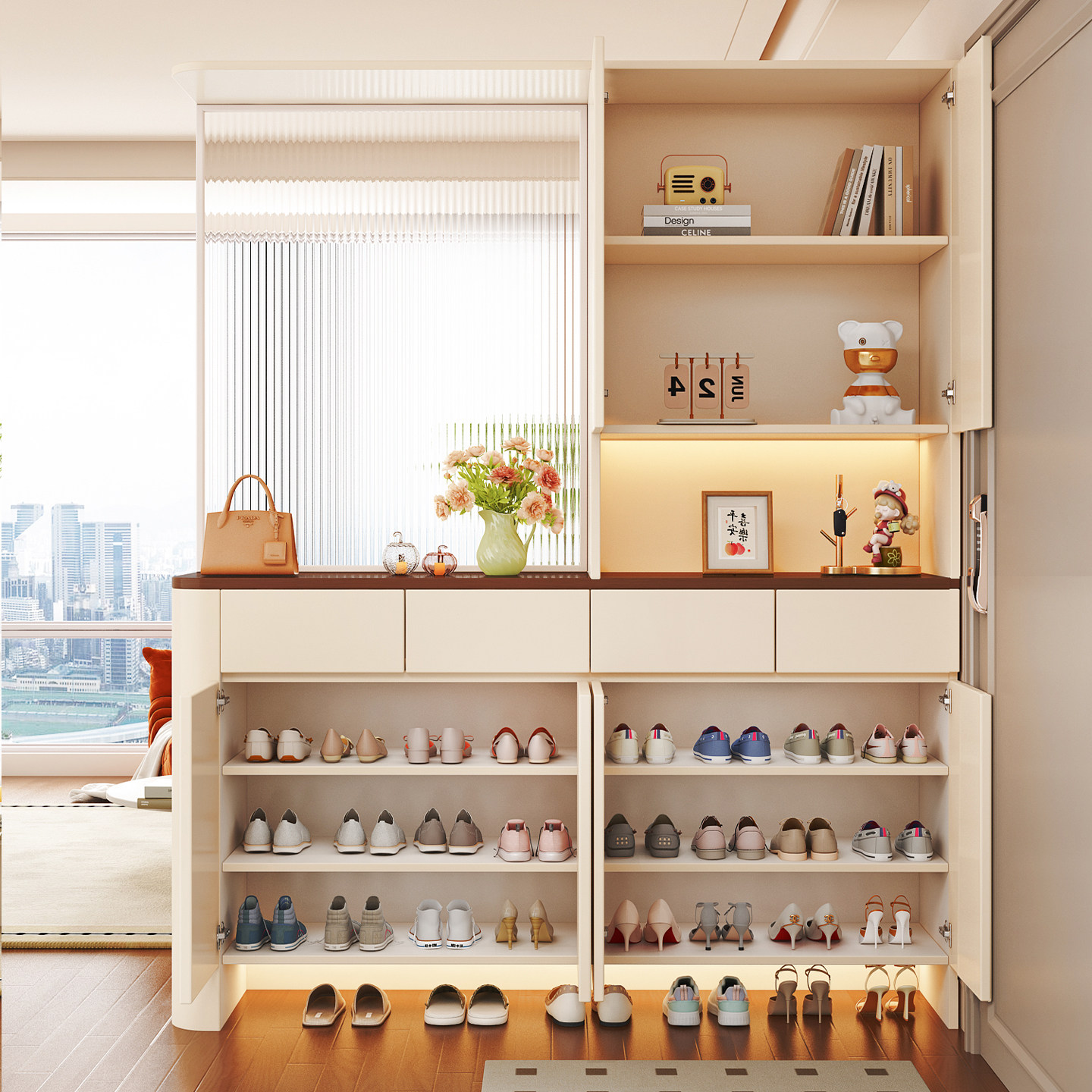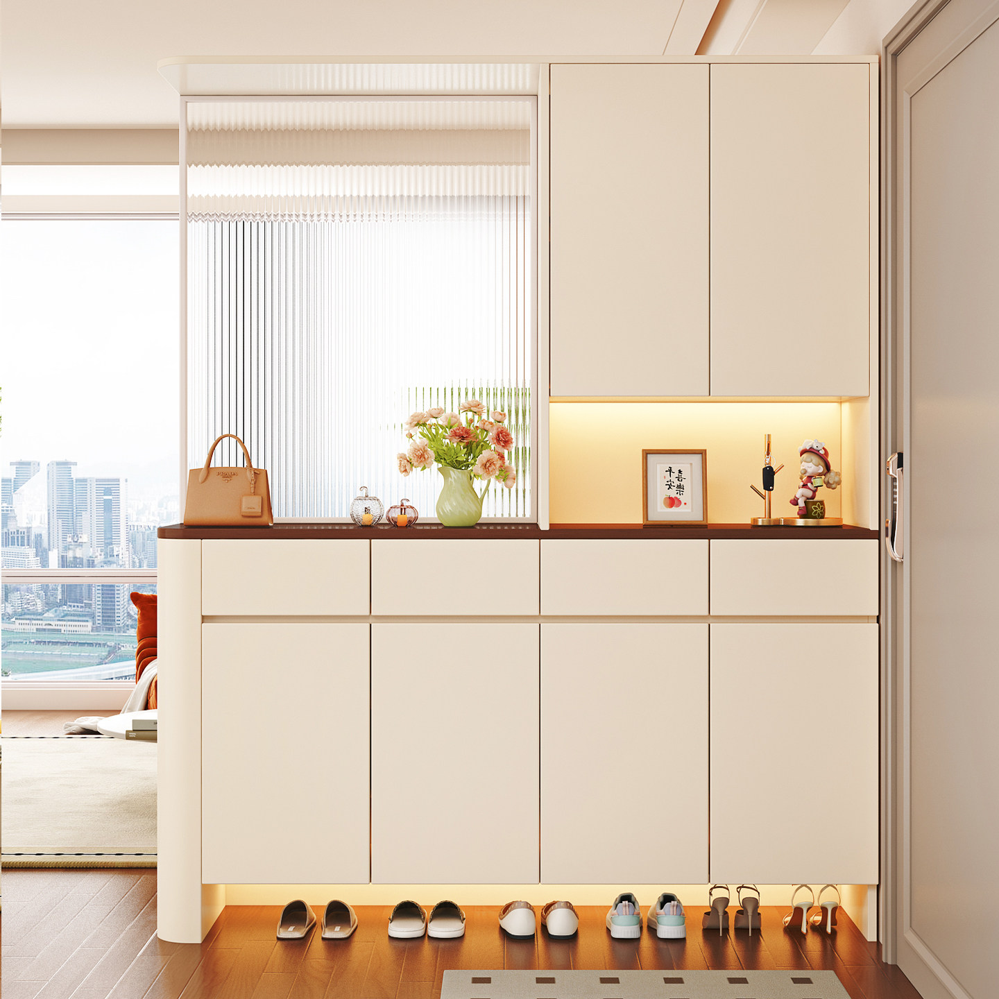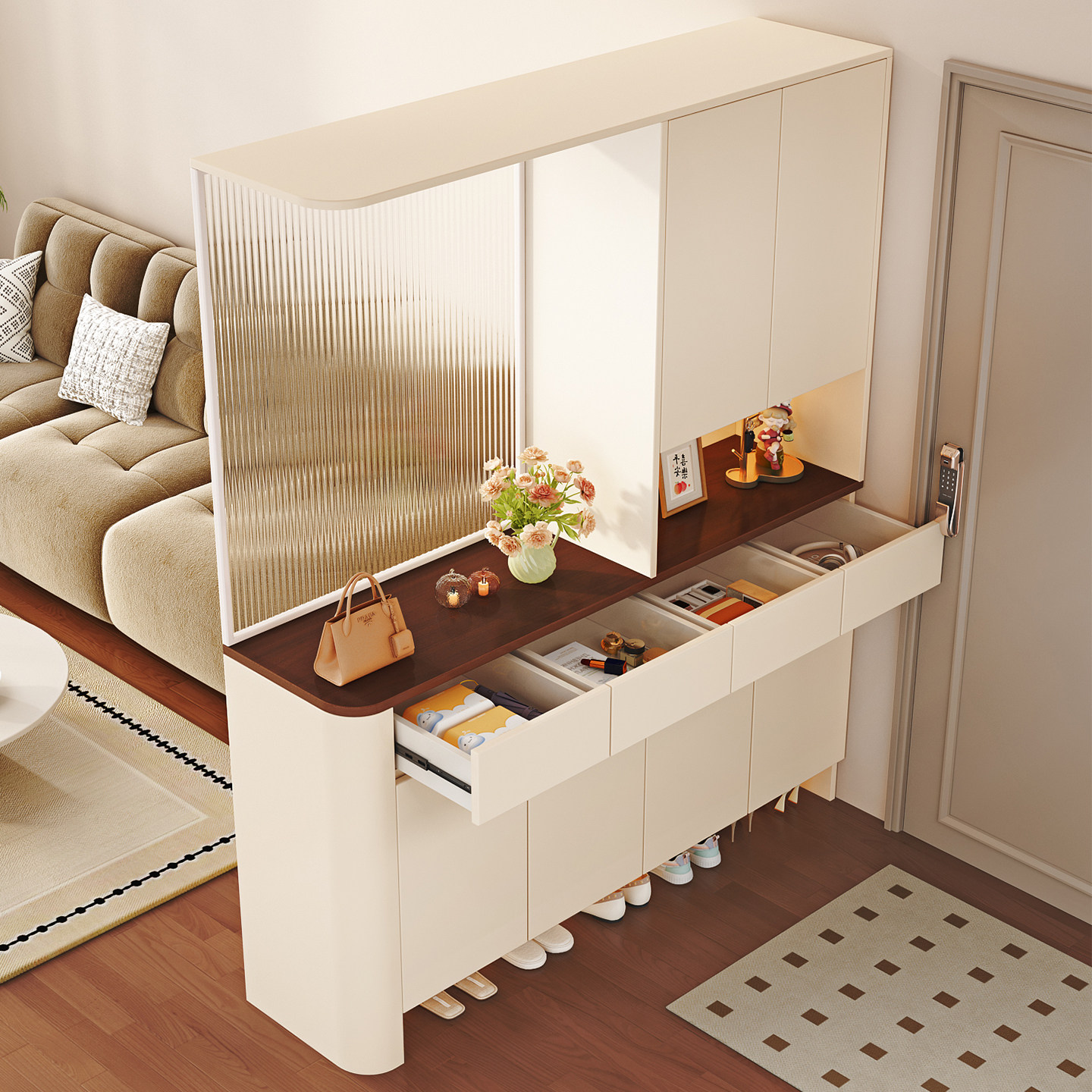 推荐理由:实木圆弧鞋柜家用门口隔断柜一体玄关柜玻璃屏风入户储物柜可定制