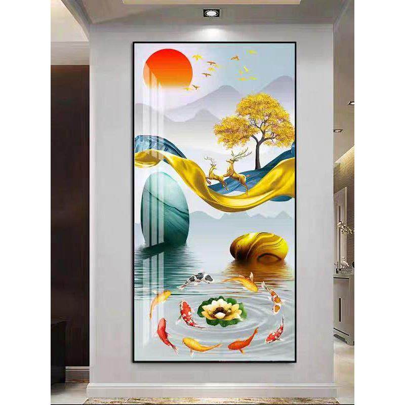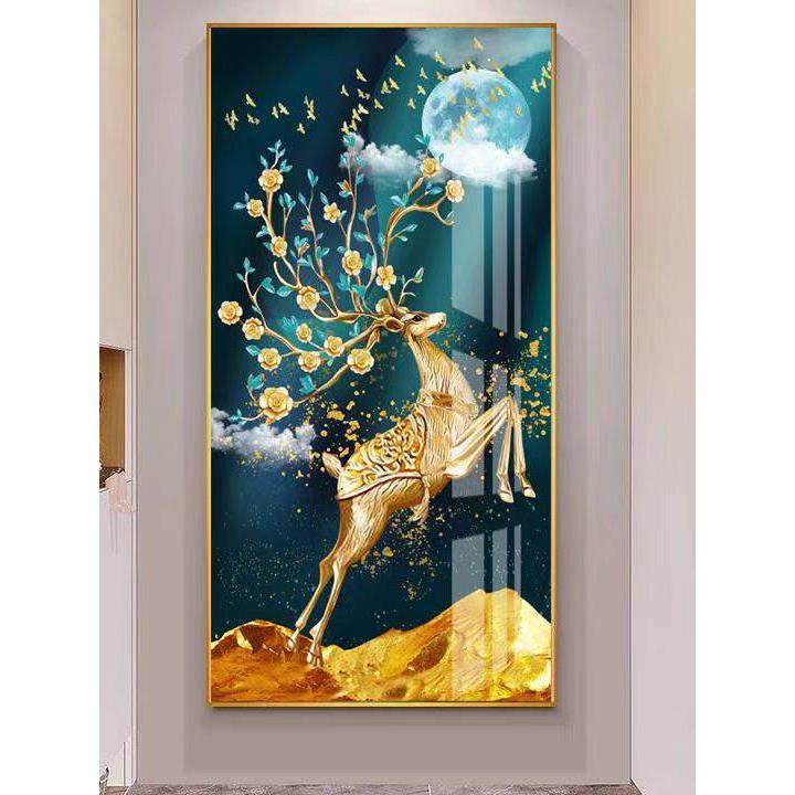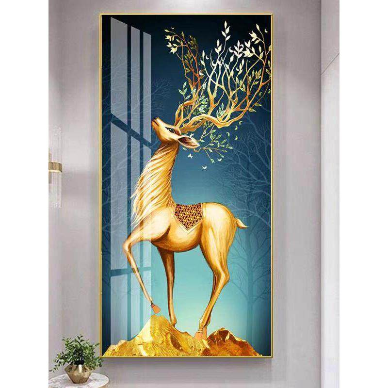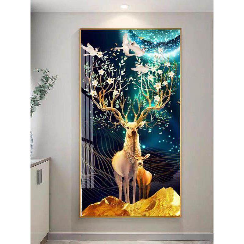 鹿现代轻奢玄关装饰画寓意好大气玄幻背景墙走廊挂画竖版过道壁画