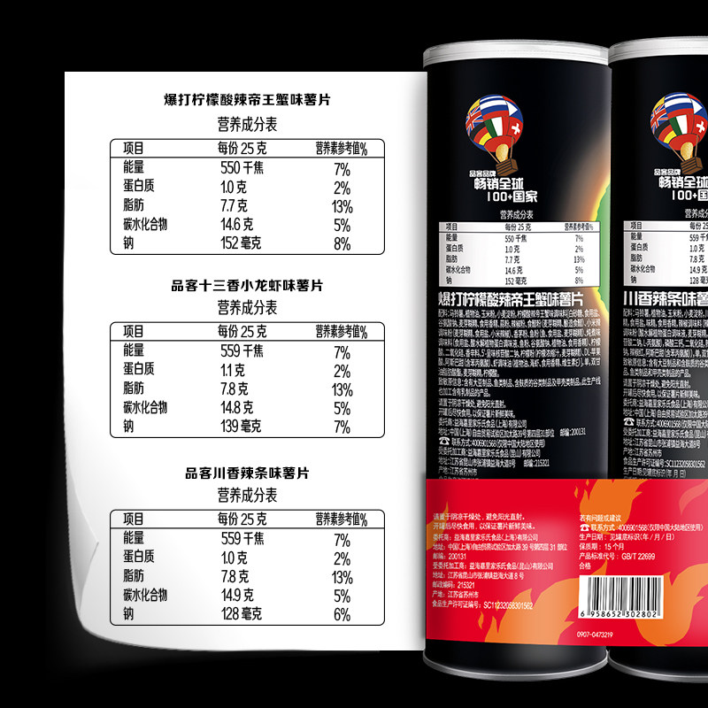 Pringles/品客薯片劲爆辣三连罐110g*3罐帝王蟹/小龙虾/辣条零食