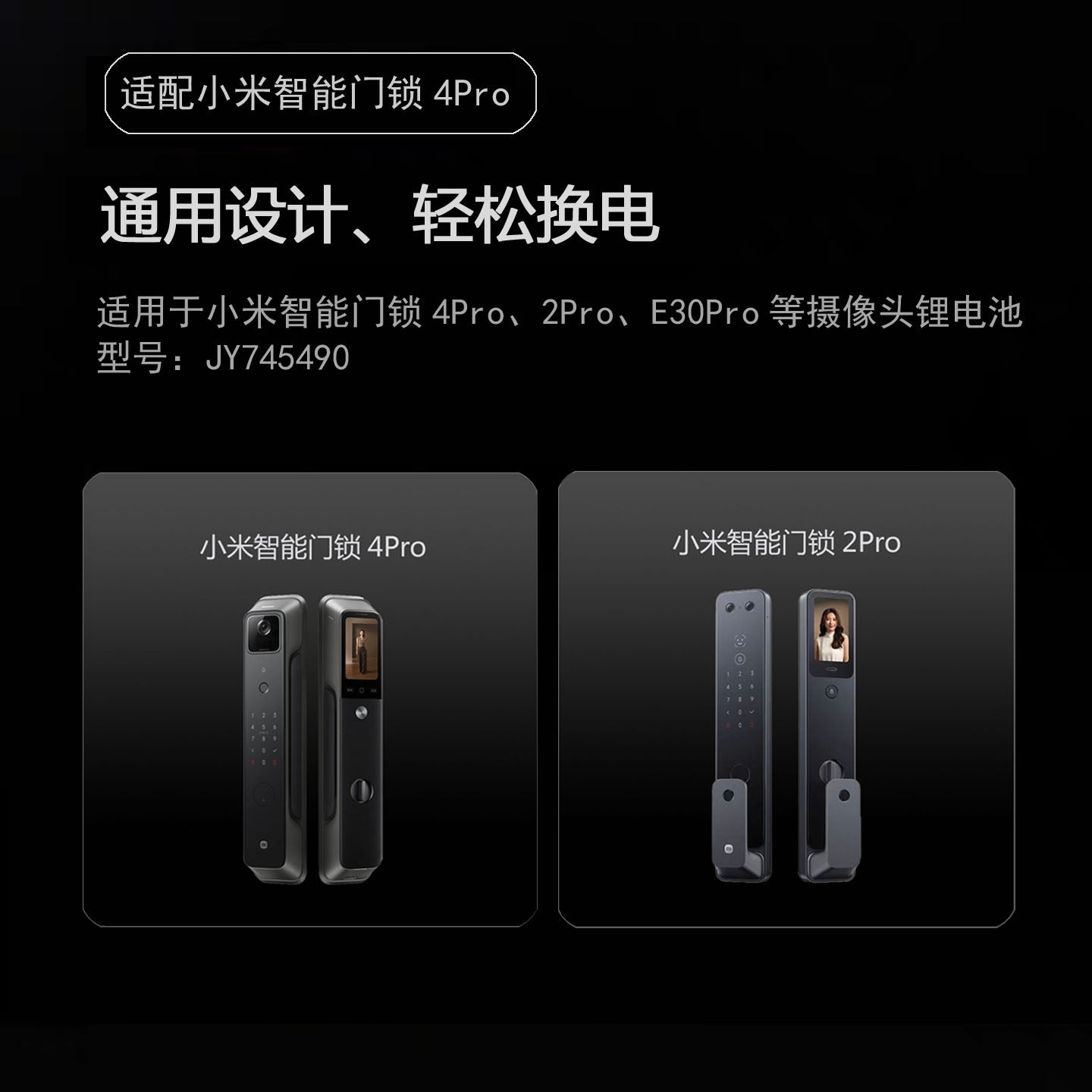 适用小米智能门锁4Pro摄像头锂电池原装配件JY745490 5000mAh