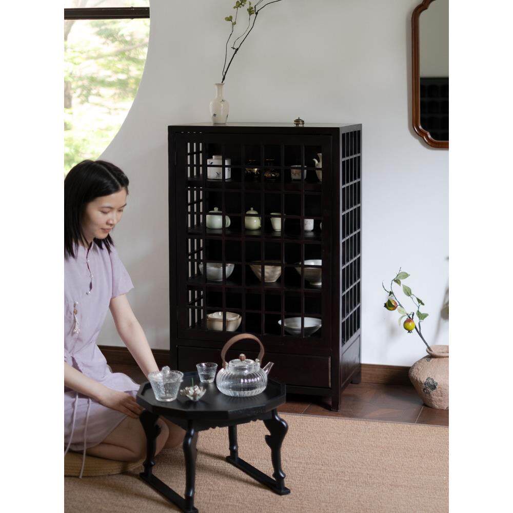 文森家新中式餐具柜宋代美学茶室茶具陈列柜实木客厅陈列柜