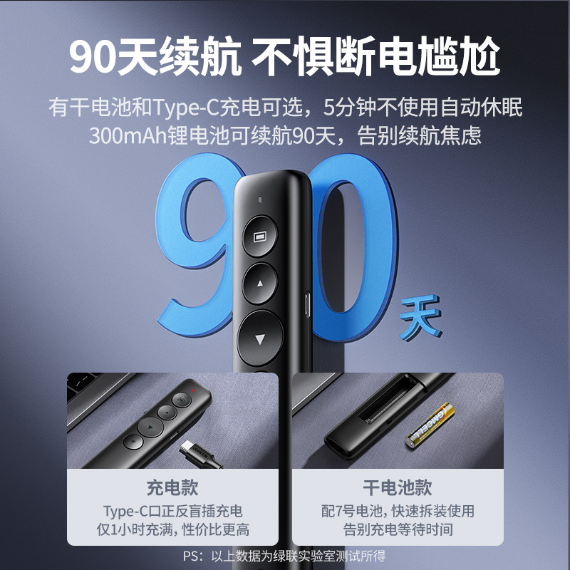 绿联翻页笔激光电脑ppt遥控投影仪控制器教师用多功能充电讲课演讲课件翻阅多媒体幻灯片换页红外线电子教鞭