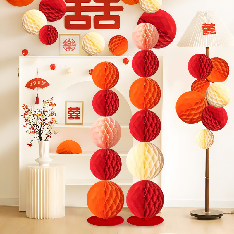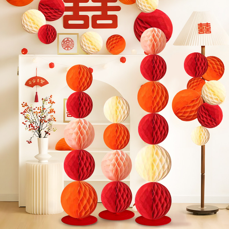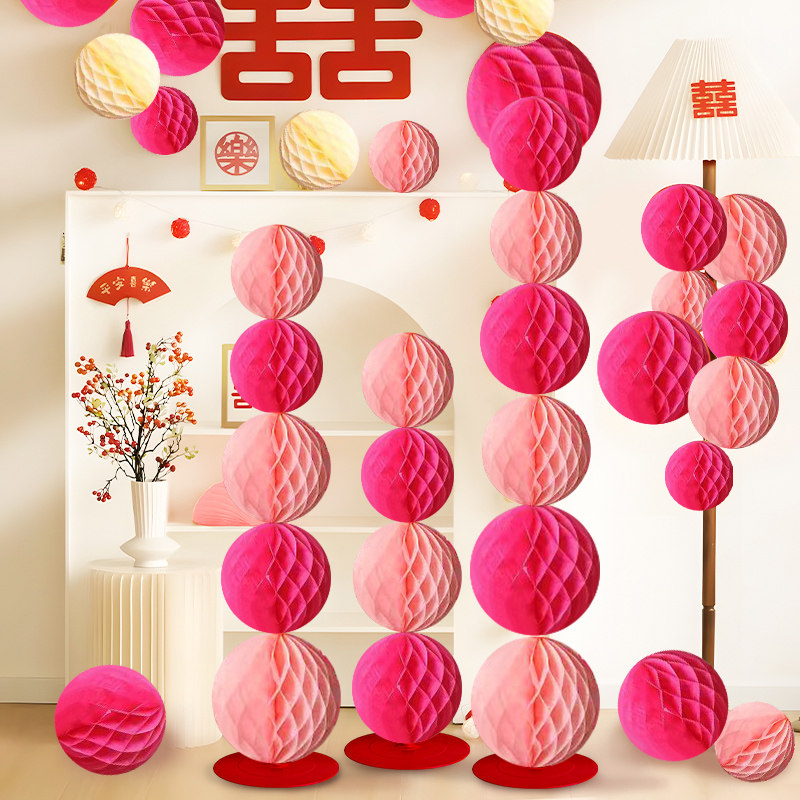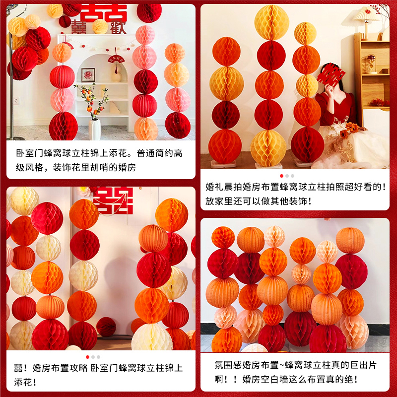 婚房装饰蜂窝球灯笼立柱套装结婚客厅布置神器婚礼男女方订婚专用