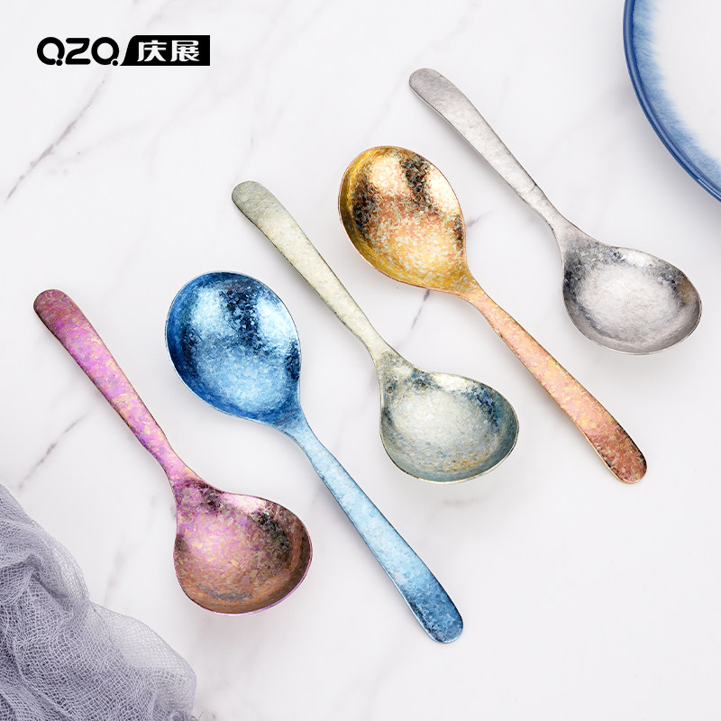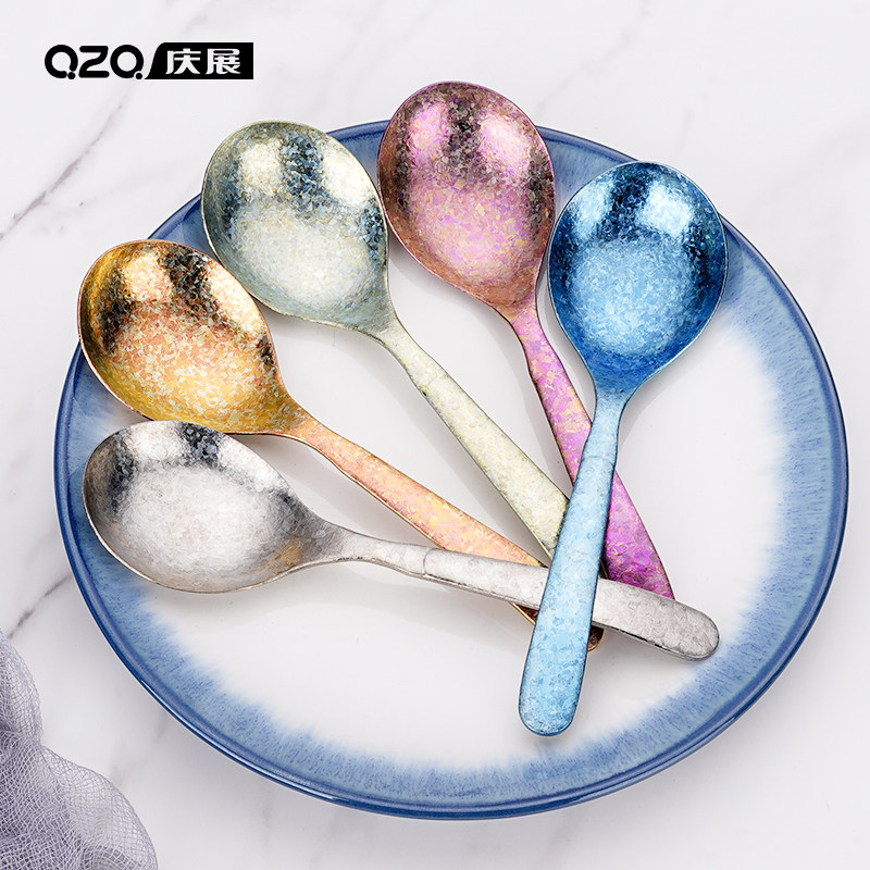 庆展 纯钛 西餐勺子 吃饭甜品 饺子勺 高颜值 汤饭 加厚 汤匙调羹