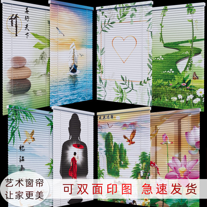 百叶窗免打孔印花窗帘定制图案铝折帘卧室电动卫生间办公室遮阳帘