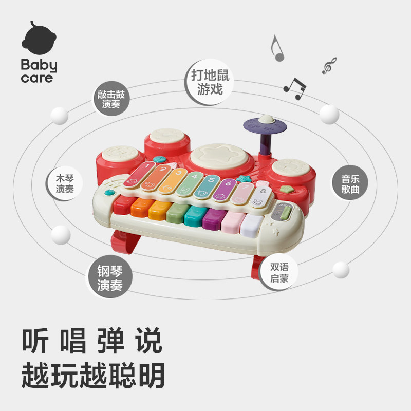 babycare宝宝手敲琴儿童初学可弹奏乐器益智玩具婴幼儿手拍鼓男女