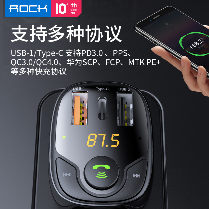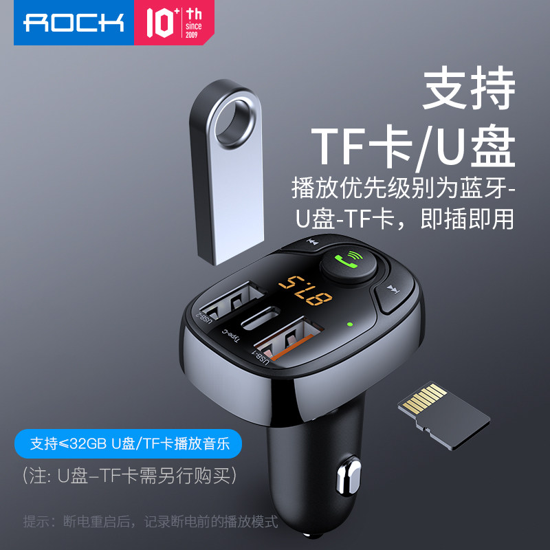 ROCK车载MP3播放器车充汽车内车上充电器U盘蓝牙转换调频FM发射器