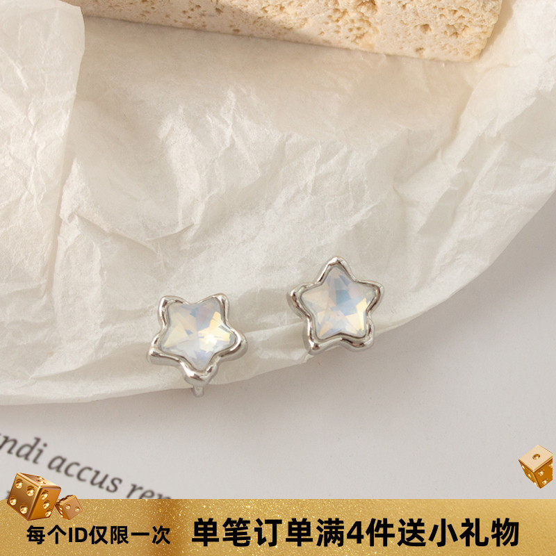 极光五角星蚊香盘耳夹无耳洞小巧精致甜美耳饰蓝幻彩星星纯银耳钉