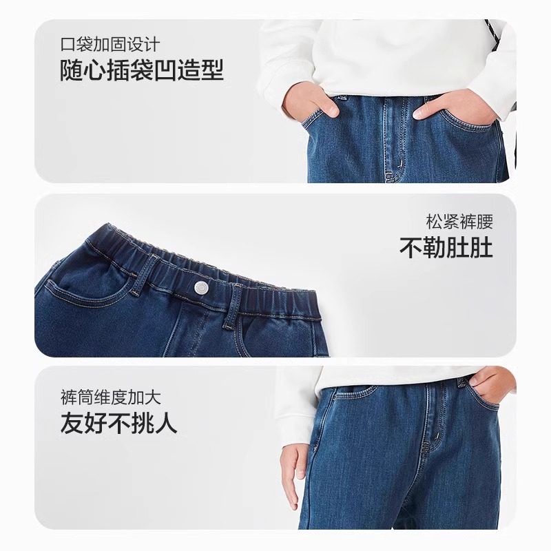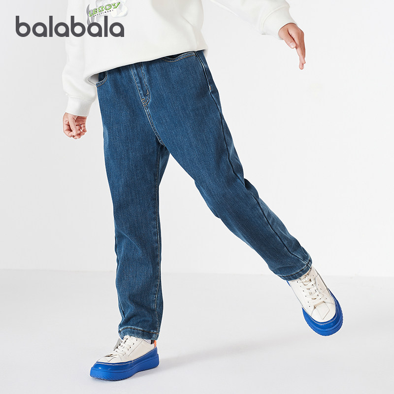 巴拉巴拉男童牛仔裤儿童加绒长裤大童加厚裤子2025冬装新款童装潮