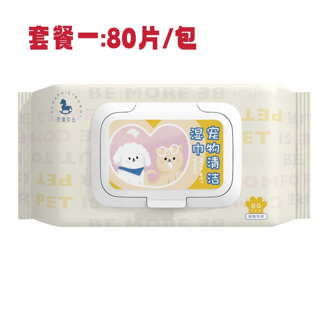 推荐理由:天真贝比宠物湿巾80抽猫狗专用擦泪痕清理身体免洗除臭清洁湿纸巾
