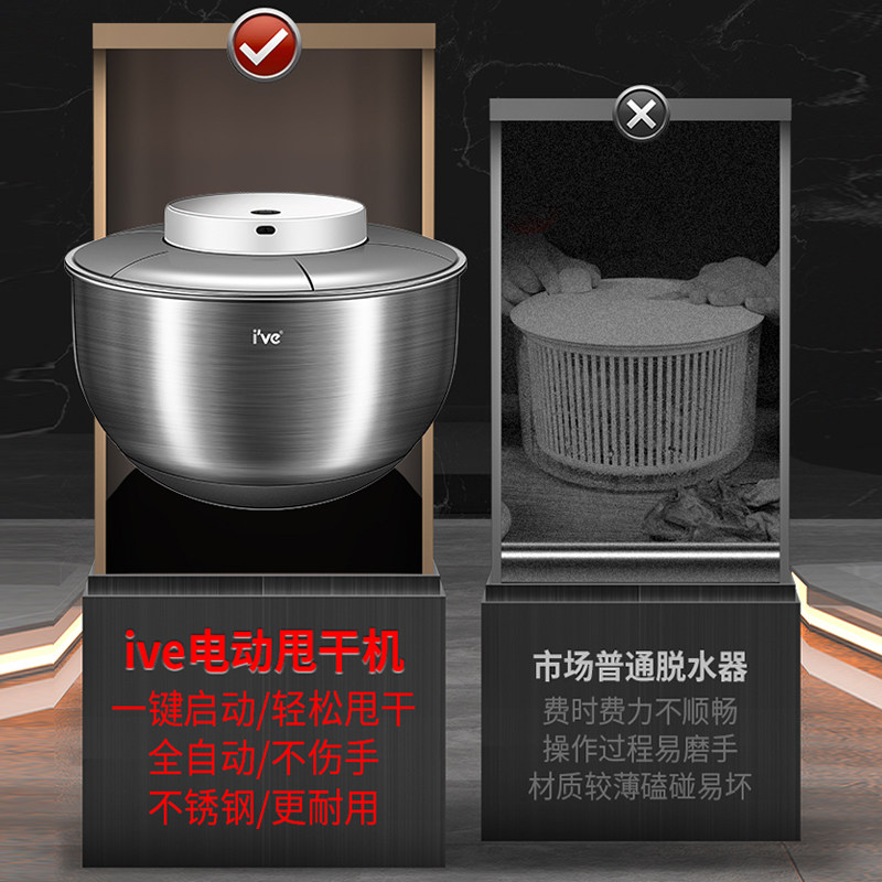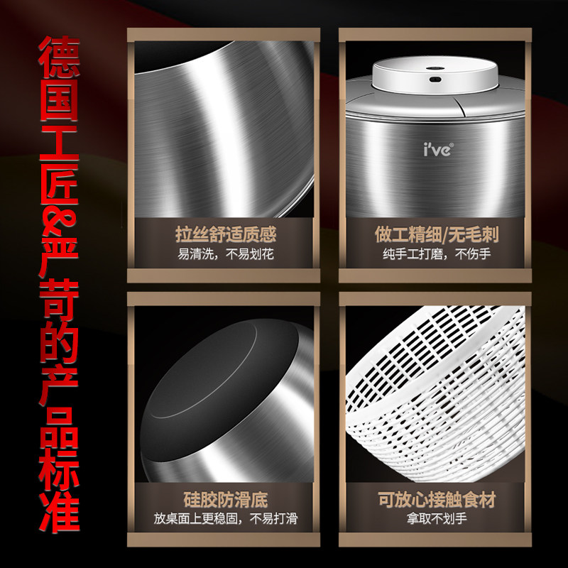 德国ive 沙拉脱水器家用电动蔬菜甩干机果蔬沥水神器青菜甩水篮