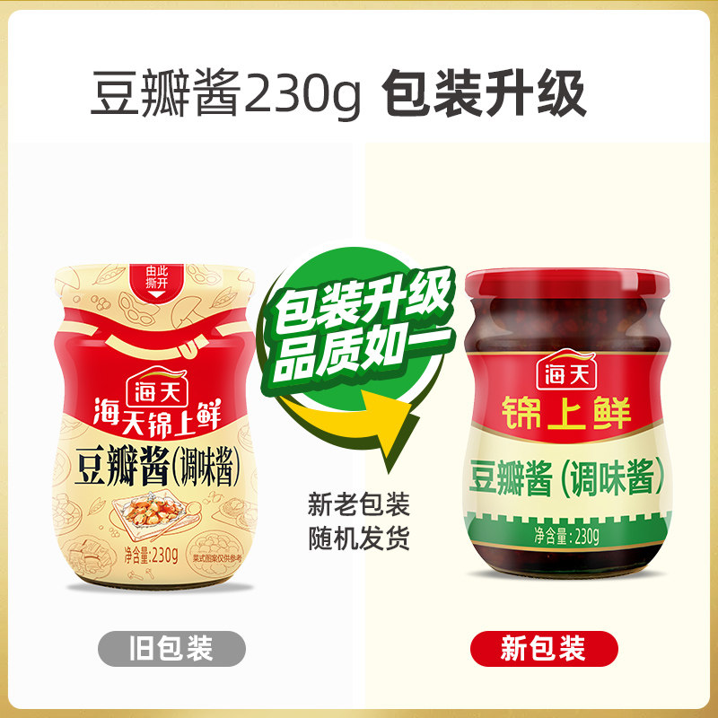 海天锦上鲜豆瓣酱230g黄豆发酵蒸炒焖蘸拌酱类调料厨房调味炒菜