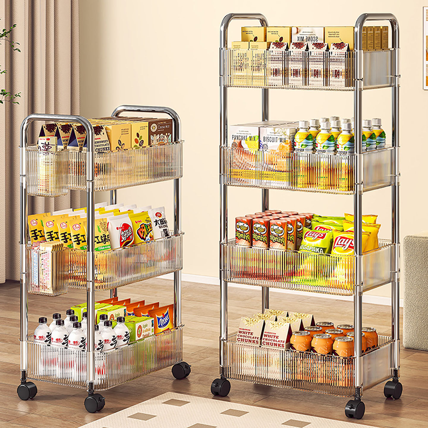零食小推车亚克力移动置物架落地带轮卧室客厅家用多层玩具收纳架
