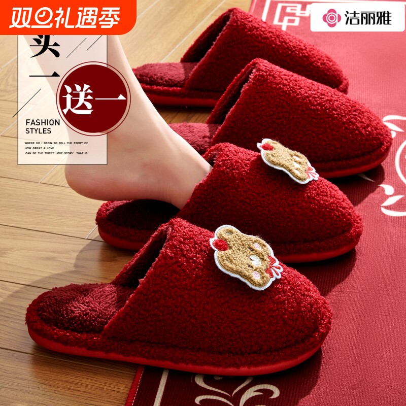 洁丽雅红色拖鞋结婚一对秋冬季新娘棉拖鞋本命年情侣喜事防滑圣诞