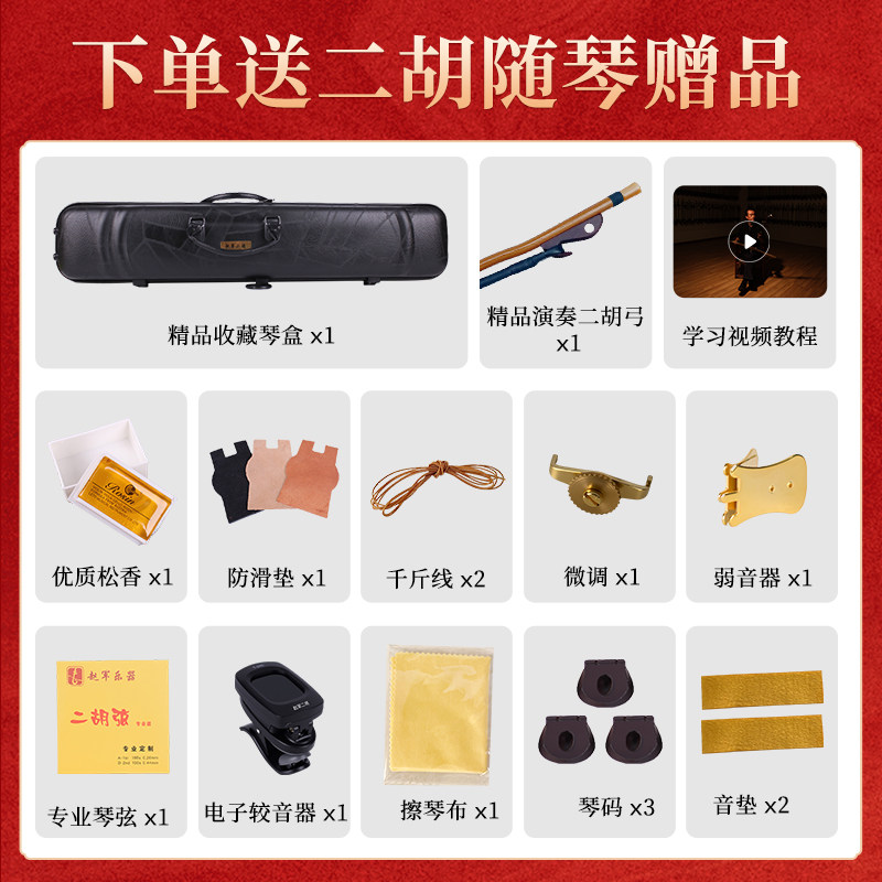 赵军紫檀二胡乐器初学者入门考级厂家直销苏州专业黑檀老红木812