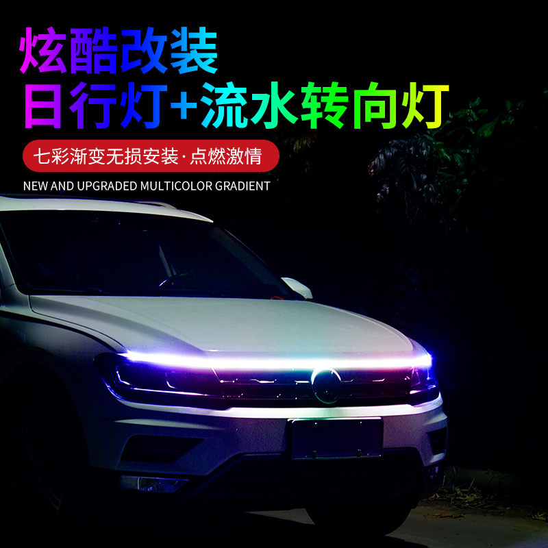 启动扫描汽车日行灯LED流水转向灯动态机盖装饰灯导光条贯穿灯