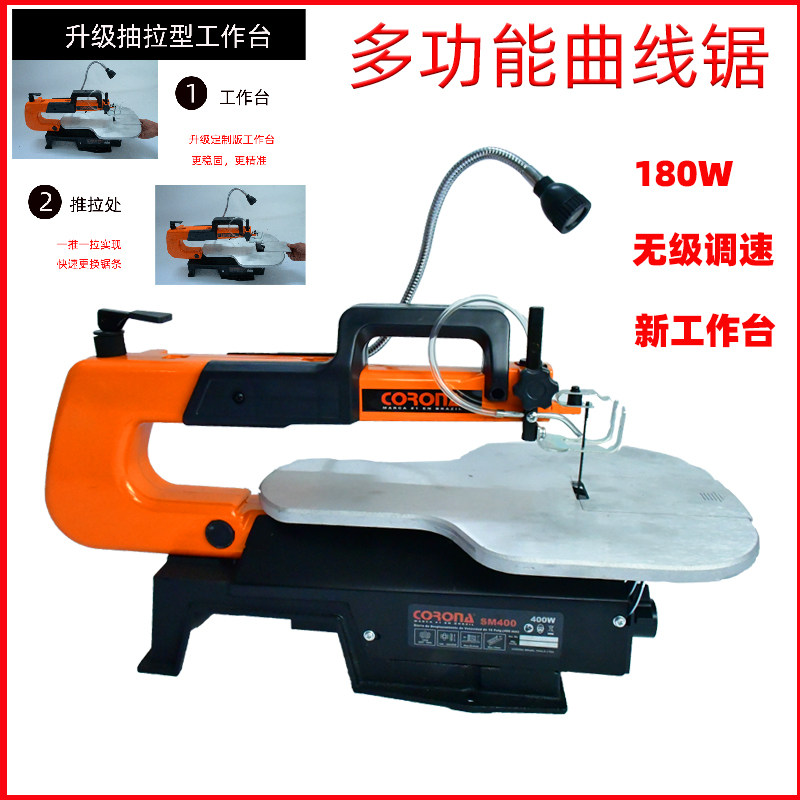 推荐理由:曲线锯台式家用多功能电动拉花锯木工小型雕花锯调速无尘电锯锯条