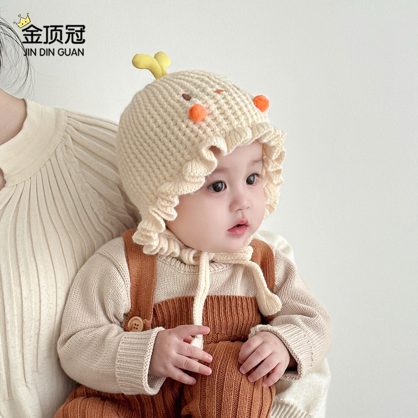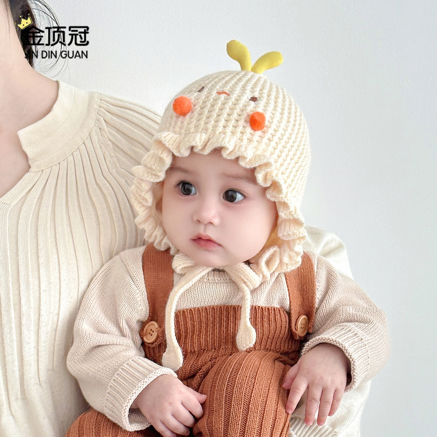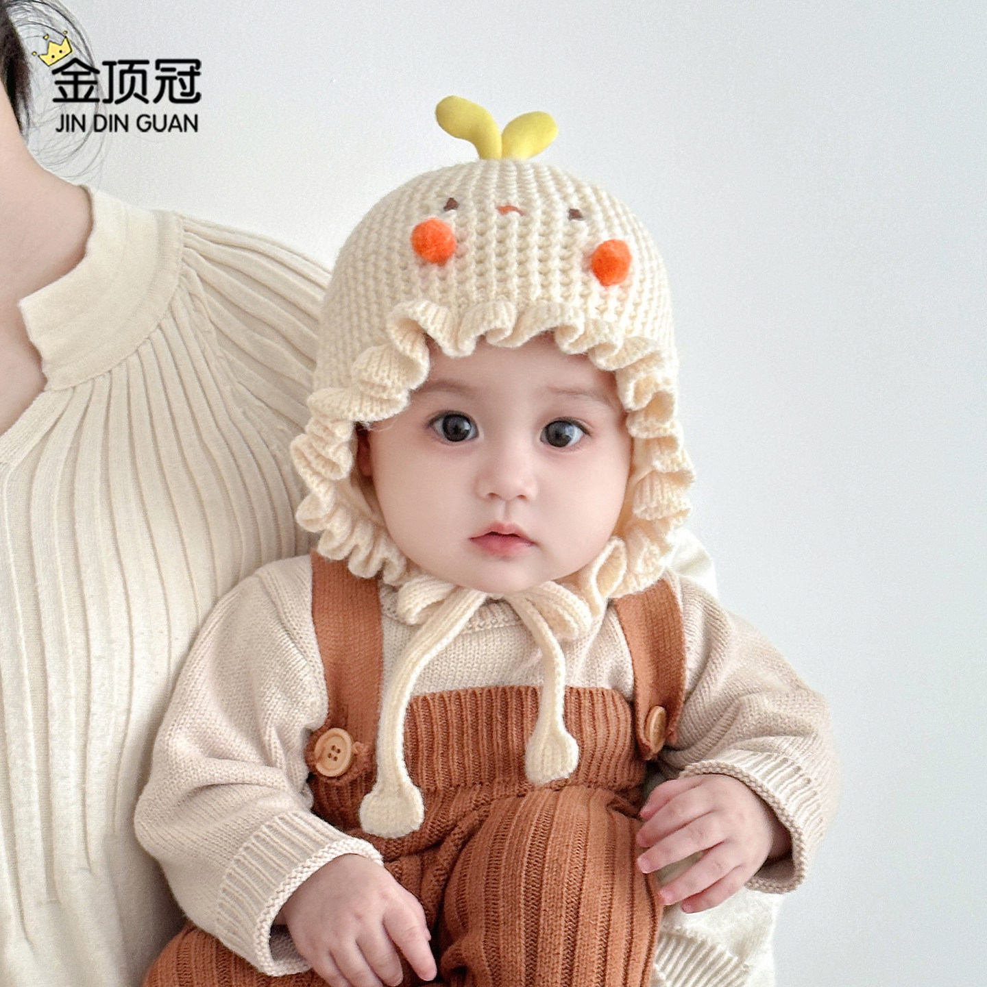 推荐理由:婴儿帽子秋冬季保暖加厚护耳毛线帽男女宝宝可爱小月龄系带针织帽