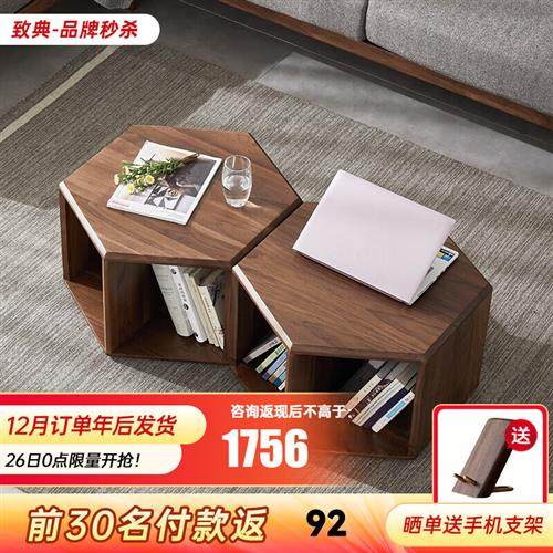 全典 致实木茶几小茶几桌 个性几何角几北欧实木六角茶几简约黑胡