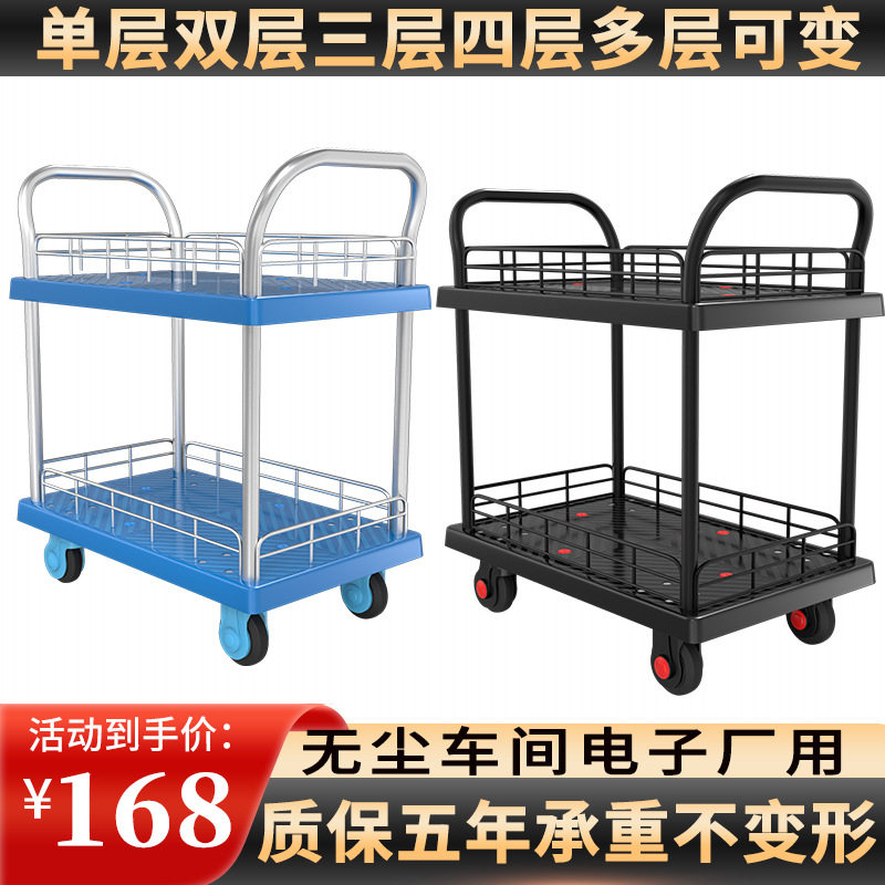 推荐理由:双层工具车多层搬运平板车带围栏拖车仪器电子厂无尘车间厂房推车