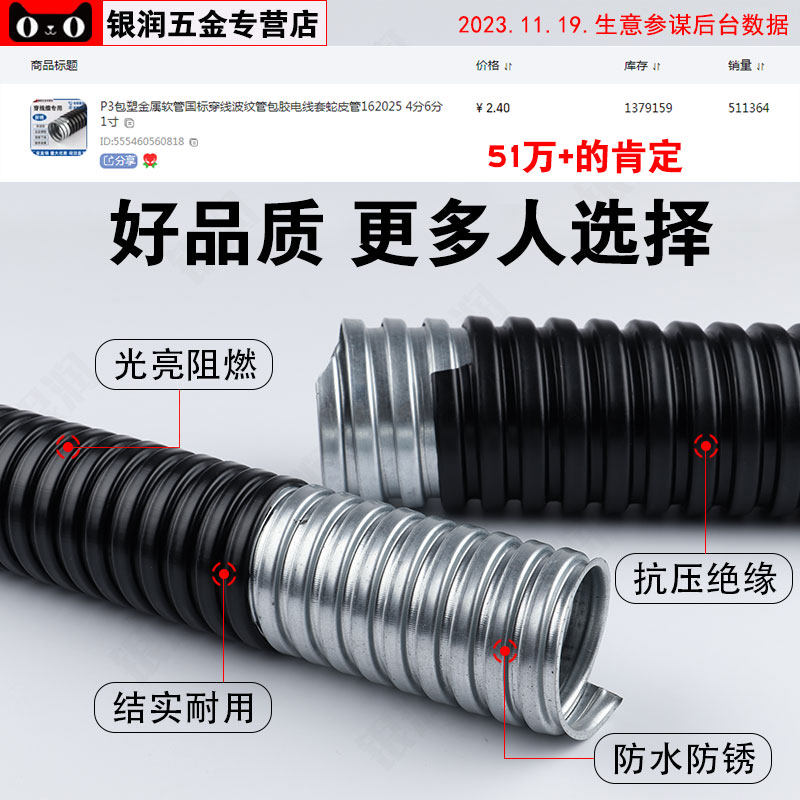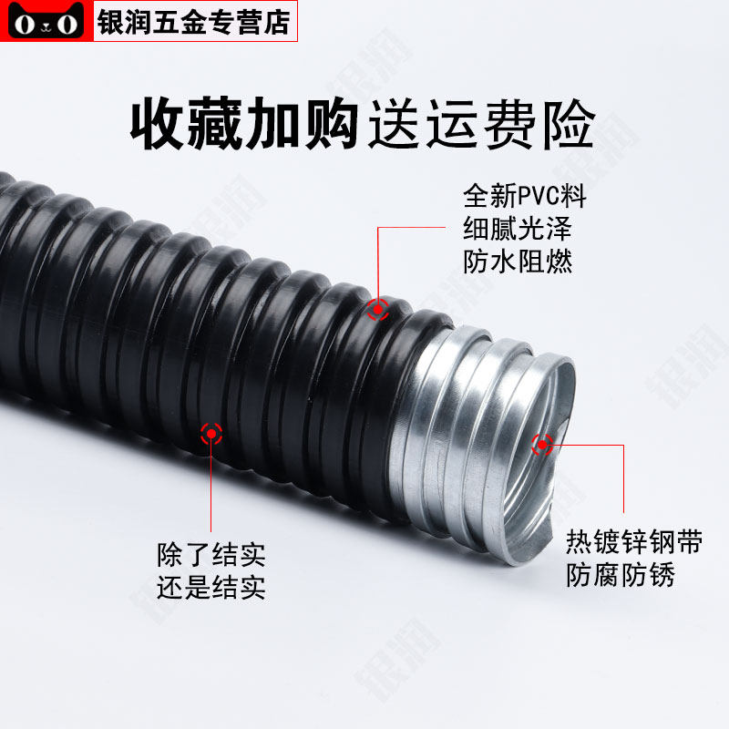 P3包塑金属软管国标穿线波纹管包胶电线套蛇皮管162025 4分6分1寸