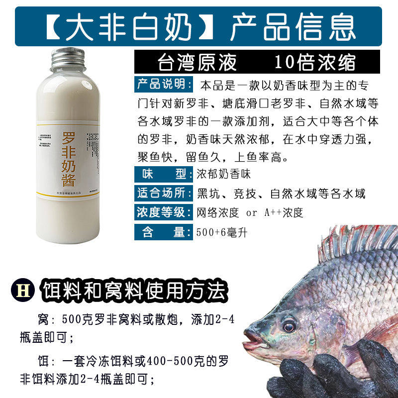 推荐理由:罗非小药白奶酱高浓添加剂白奶奶新老鱼黑坑大非鲤鱼鲫鱼冷冻饵料