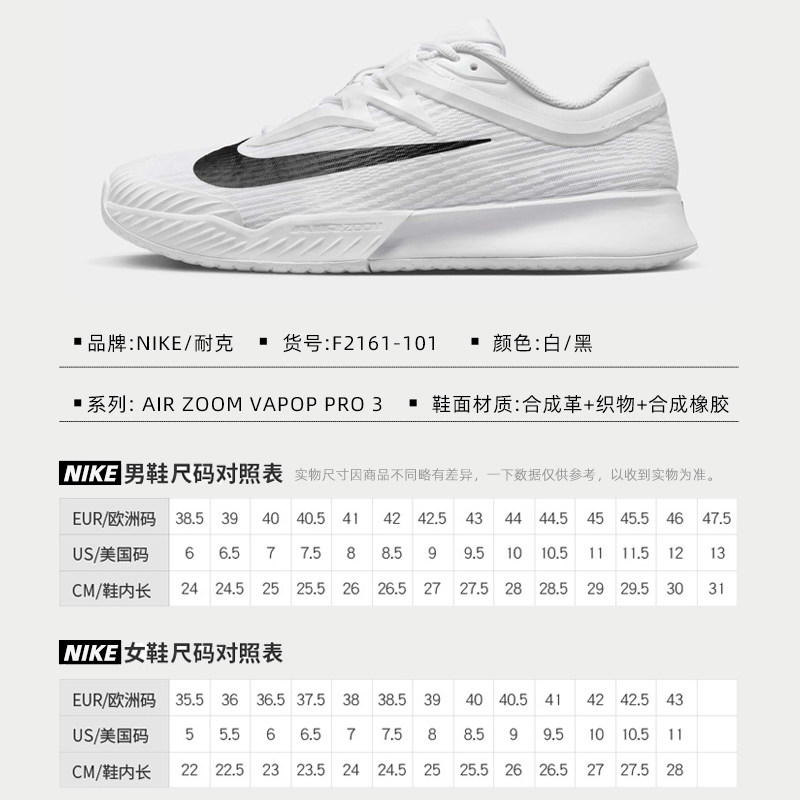 推荐理由:Nike耐克网球鞋男款2025新款ZOOM VAPOR PRO3 V12透气专业运动鞋