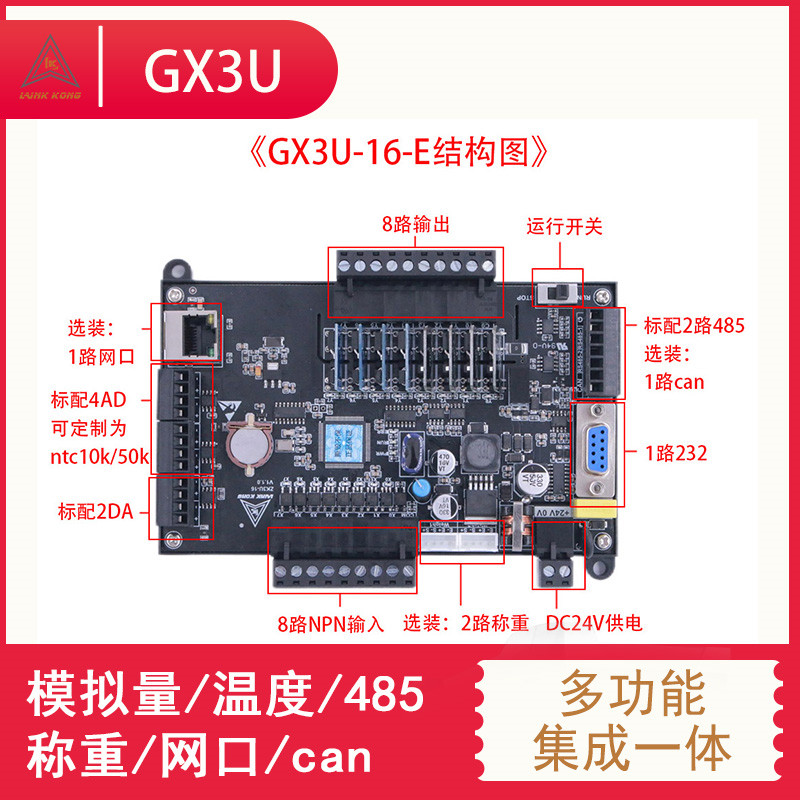 推荐理由:国产领控PLC工控板 GT/GX3U-14 20 24 32 48 64 80兼容FX3U控制器
