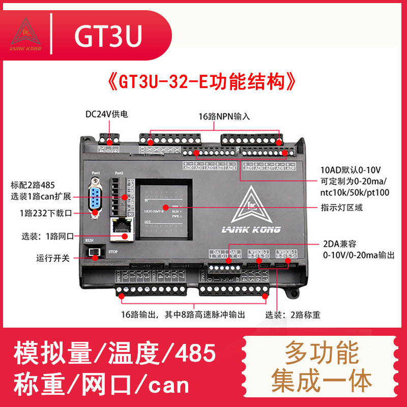 国产领控PLC工控板 GT/GX3U-14 20 24 32 48 64 80兼容FX3U控制器