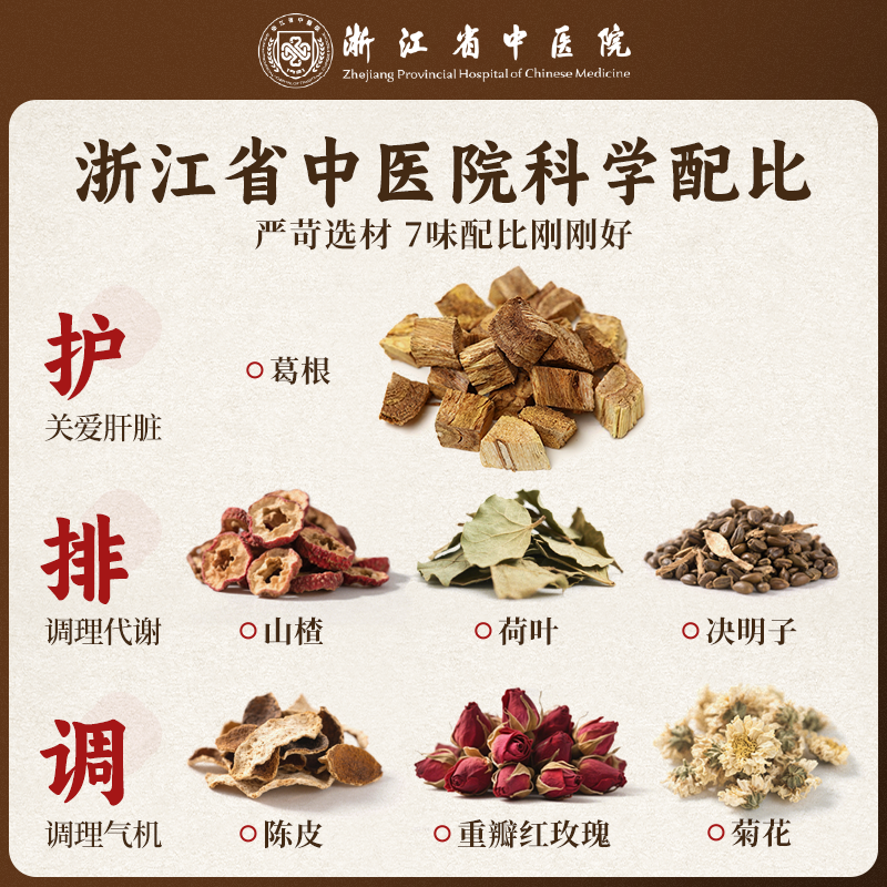 葛根茶荷叶山楂陈皮菊花玫瑰茶决明子浙江省中医院养生补气血养肝