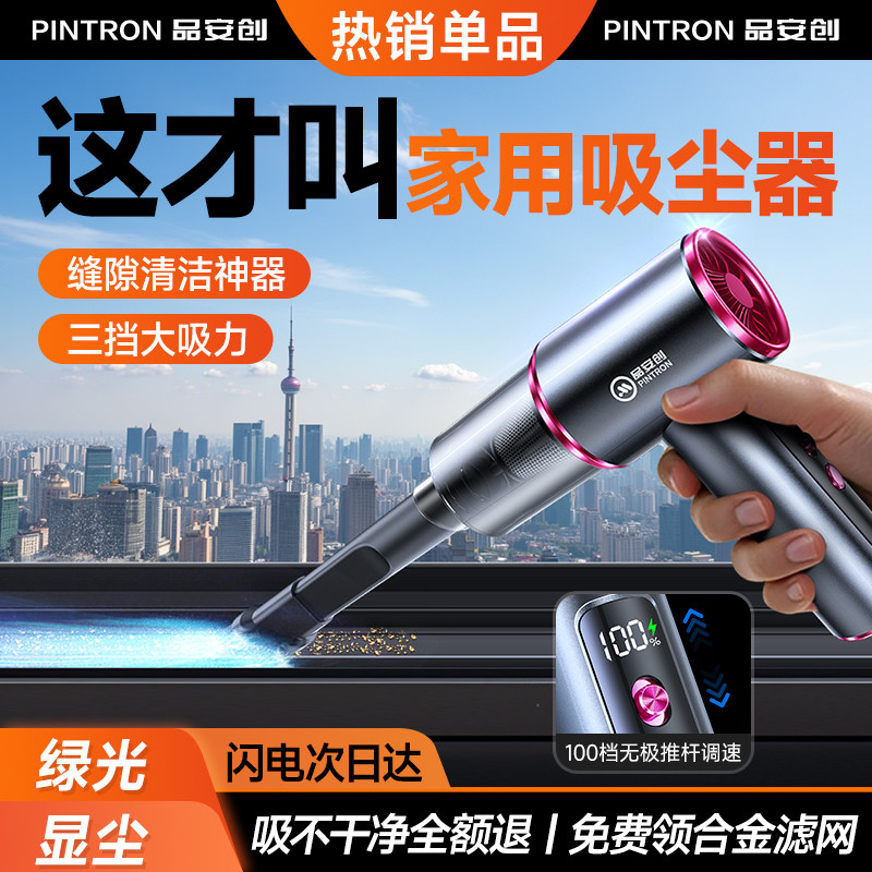 推荐理由:绿光显尘丨百档调节丨超强吸力丨车家两用