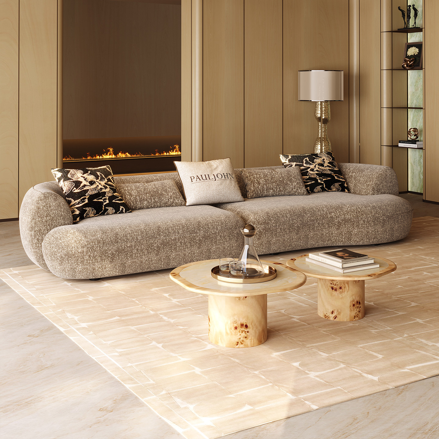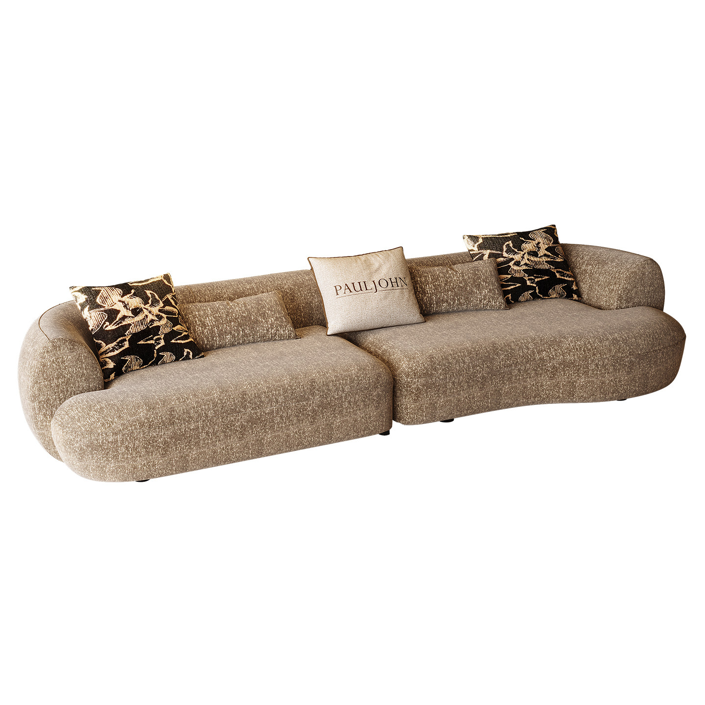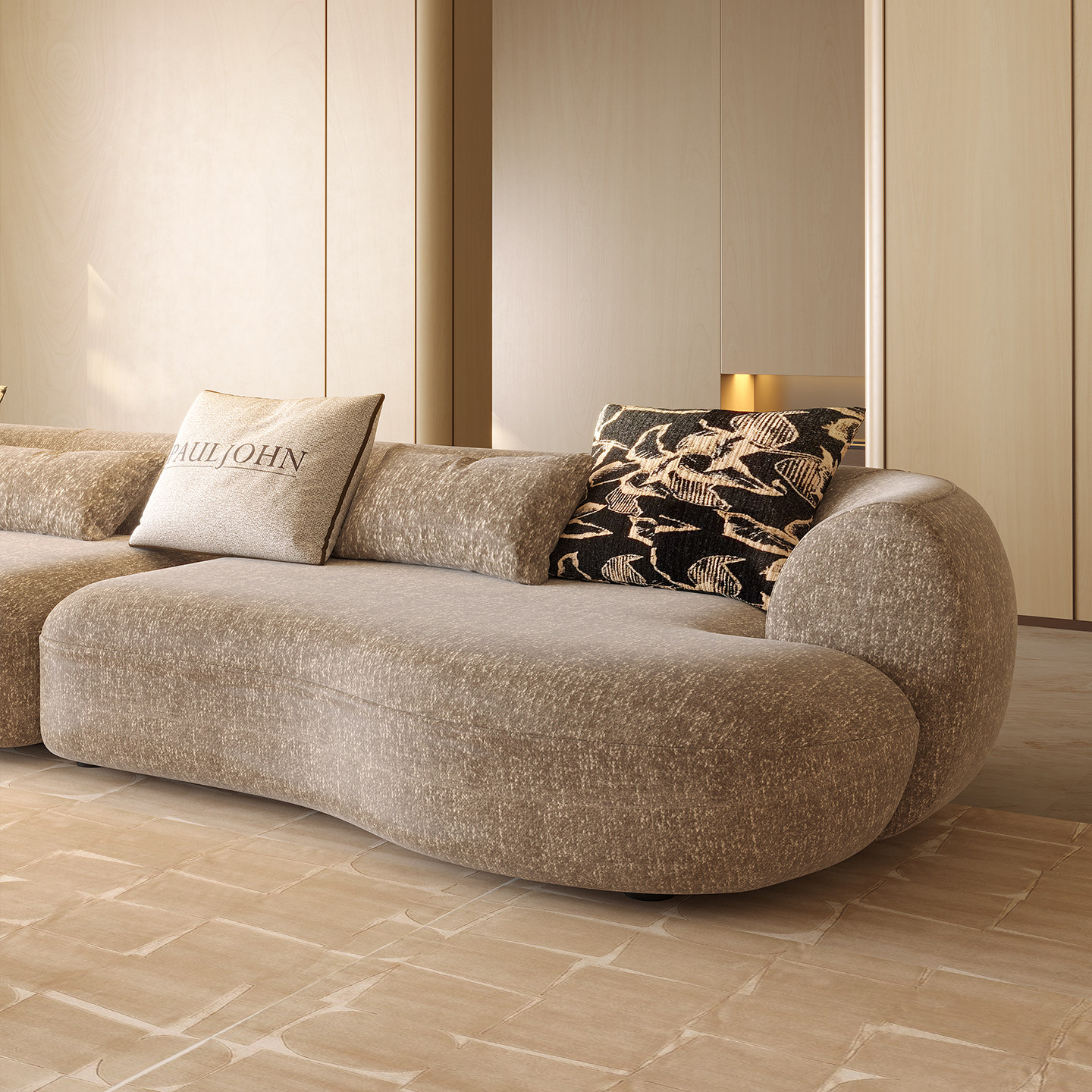 PAULJOHN意式设计师圆弧形沙发别墅大平层老钱风客厅直排布艺沙发