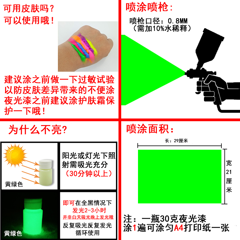 超亮手绘夜光涂料漆夜光粉荧光液水性夜光颜料艺术荧光粉夜荧光漆